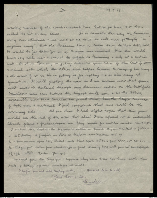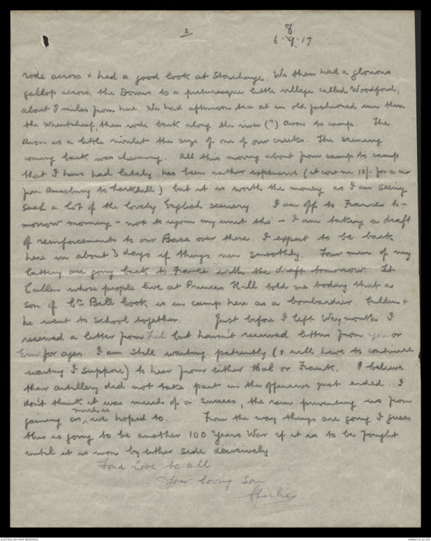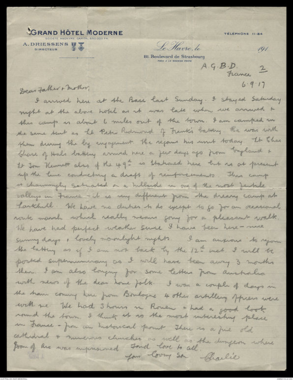 Letters from Charles Edwin Gatliff to his family and a condolence letter, June 1916 - c. September 1918 - Part 14