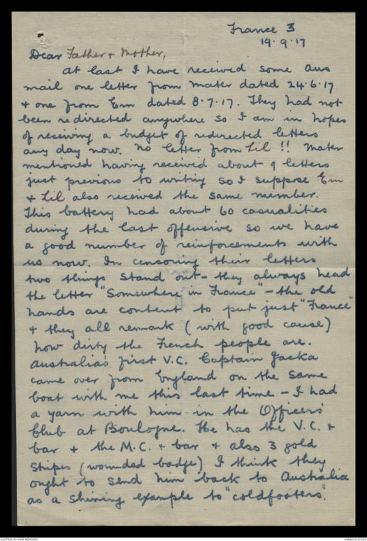 Letters from Charles Edwin Gatliff to his family and a condolence letter, June 1916 - c. September 1918 - Part 15