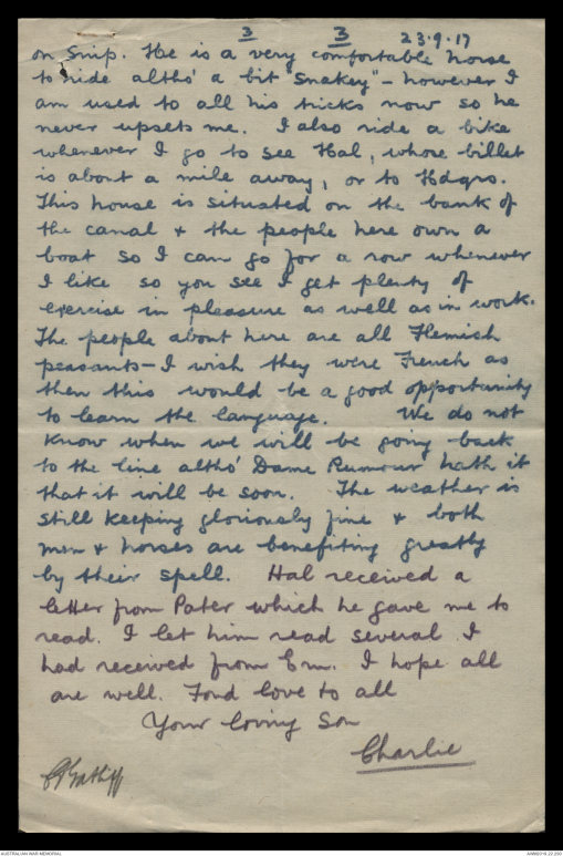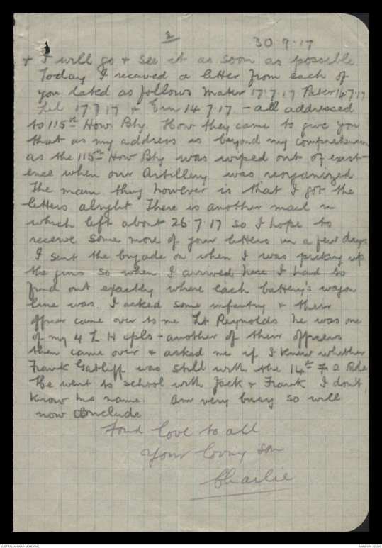 Letters from Charles Edwin Gatliff to his family and a condolence letter, June 1916 - c. September 1918 - Part 16