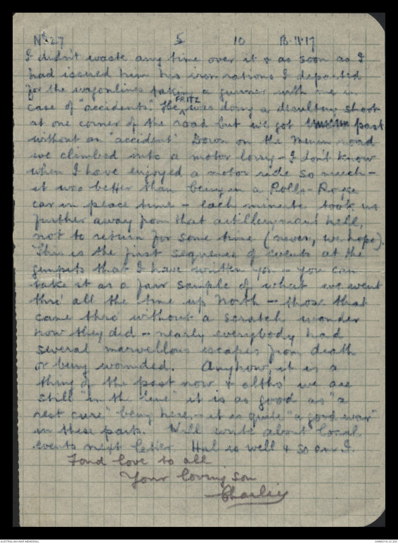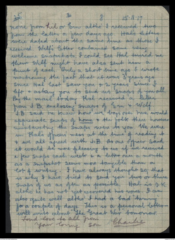 Letters from Charles Edwin Gatliff to his family and a condolence letter, June 1916 - c. September 1918 - Part 20