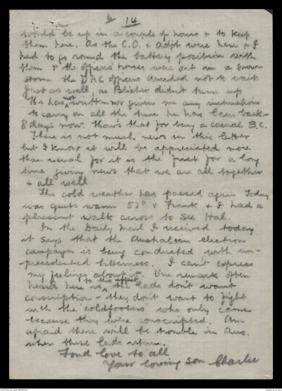 Letters from Charles Edwin Gatliff to his family and a condolence letter, June 1916 - c. September 1918 - Part 7
