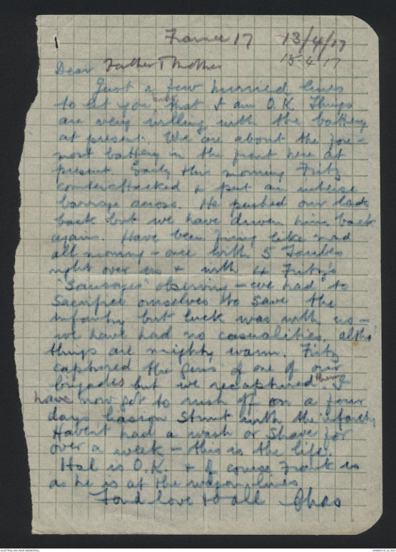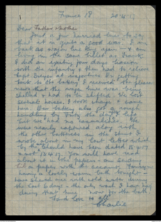 Letters from Charles Edwin Gatliff to his family and a condolence letter, June 1916 - c. September 1918 - Part 9