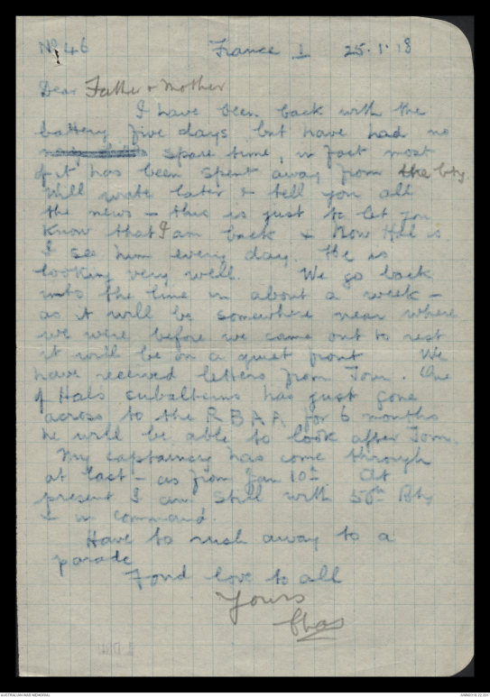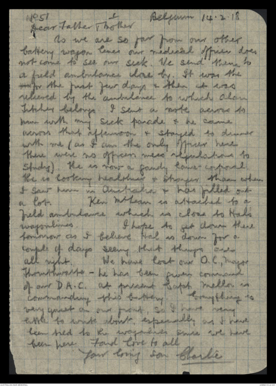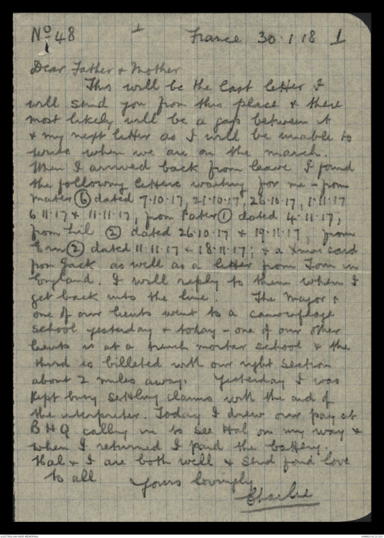 Letters from Charles Edwin Gatliff to his family, January - September 1918 - Part 1
