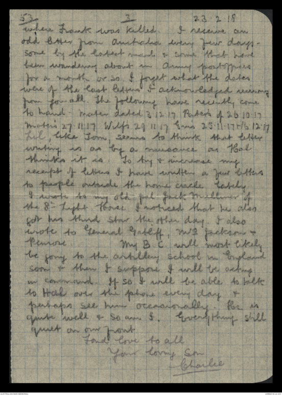 Letters from Charles Edwin Gatliff to his family, January - September 1918 - Part 2