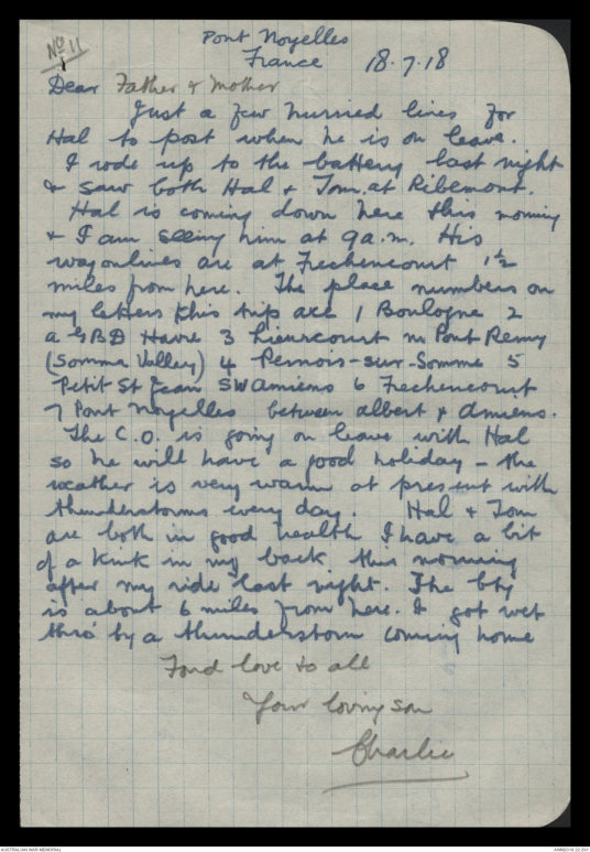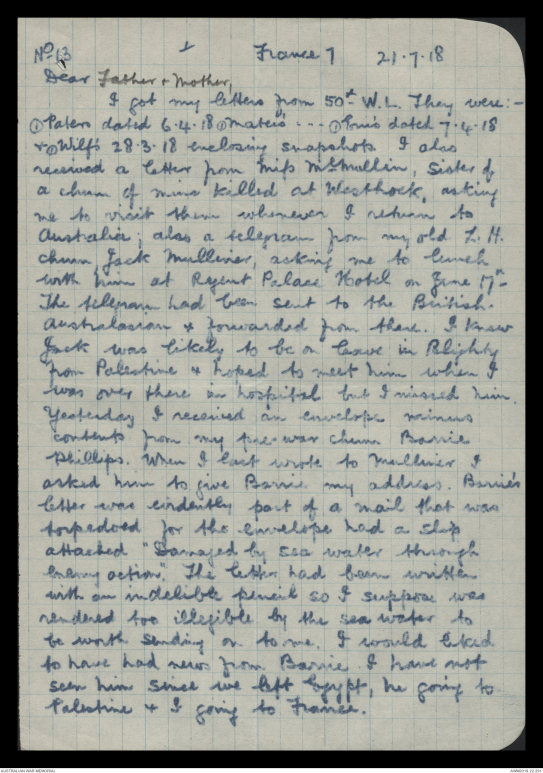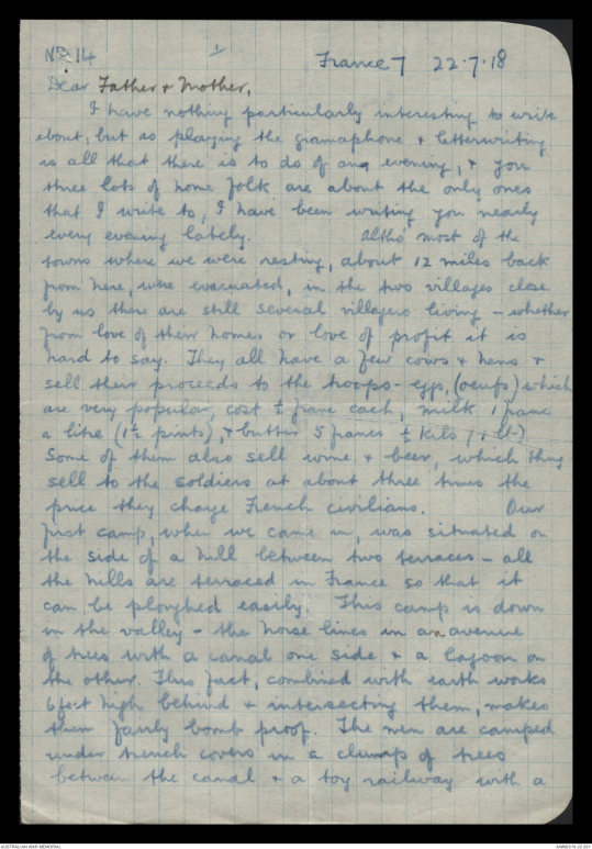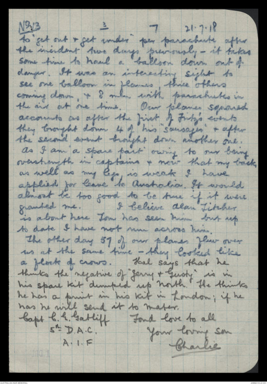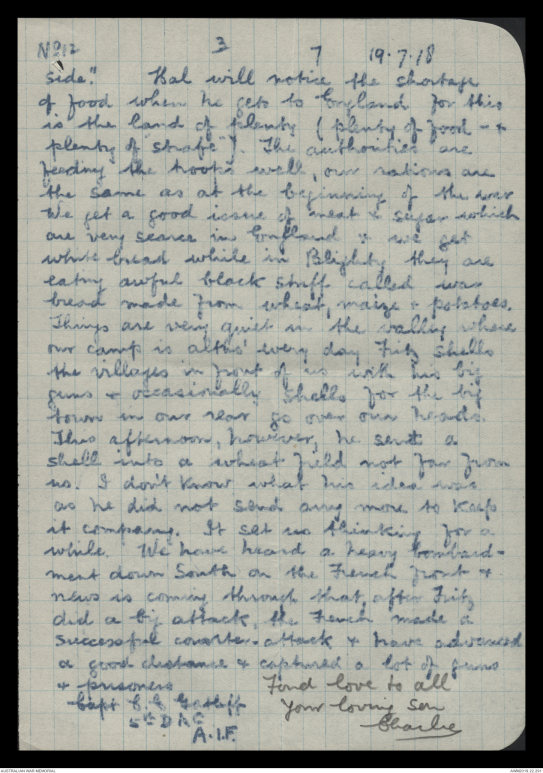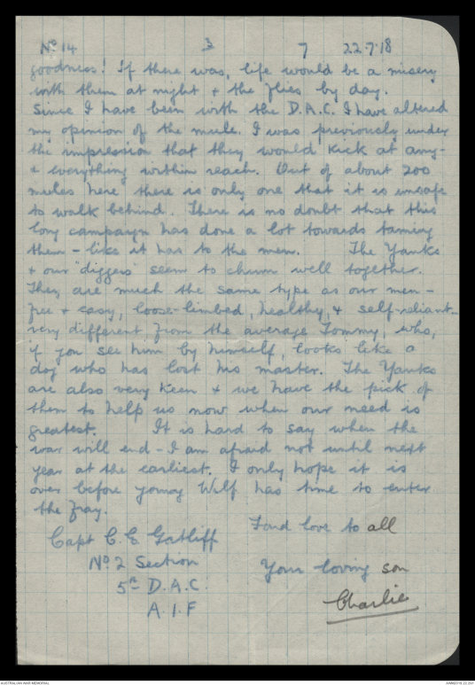 Letters from Charles Edwin Gatliff to his family, January - September 1918 - Part 7
