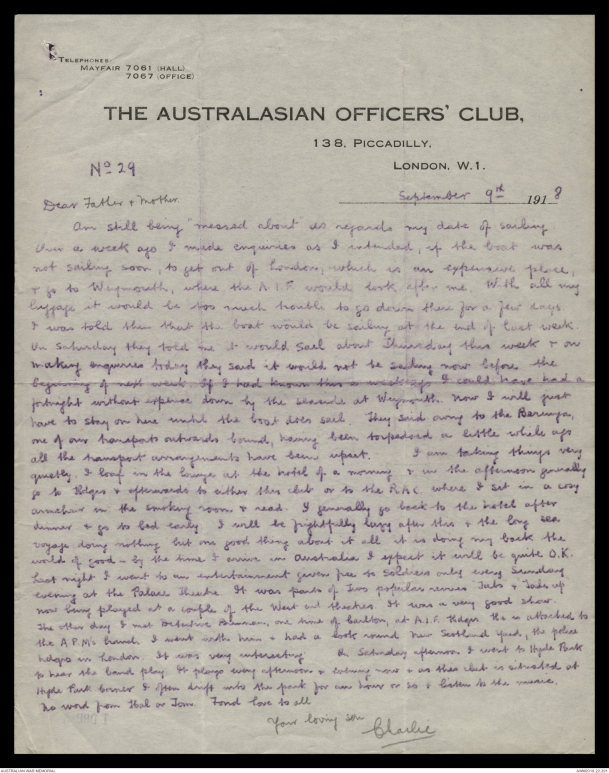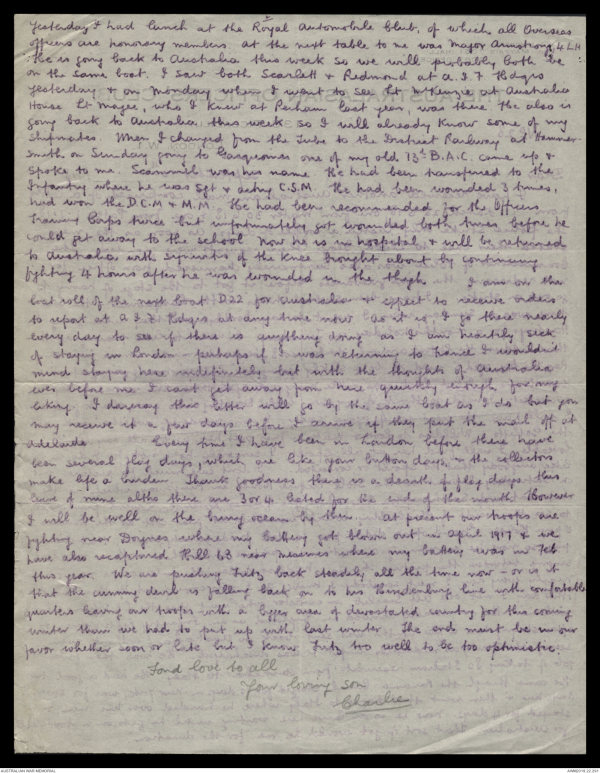 yesterday & on Monday when I went to see Lt. McKenzie at Australia