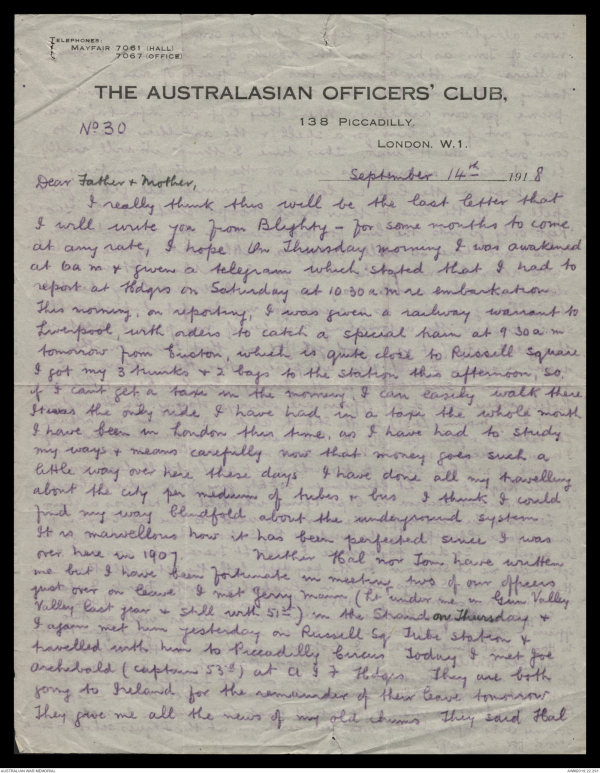 & go to Weymouth, where the A.I.F. would look after me. With all my