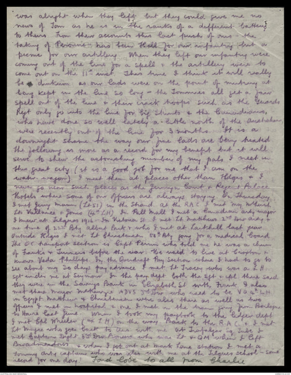 I knew at [Telgues?] 1916 - In Victoria St. I met Lt. Matthews 2nd Div Arty &