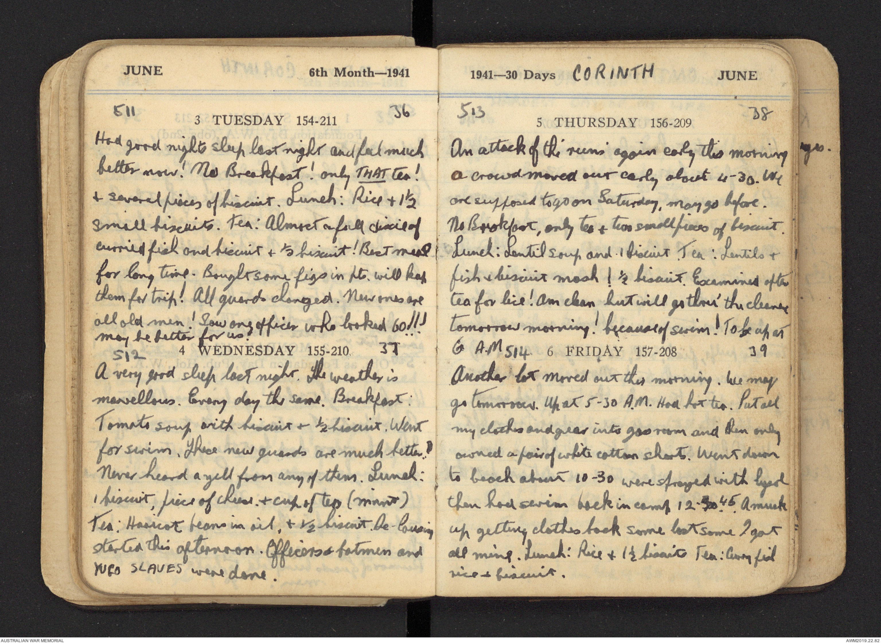 of it. Same for lunch: beans and fish for tea.