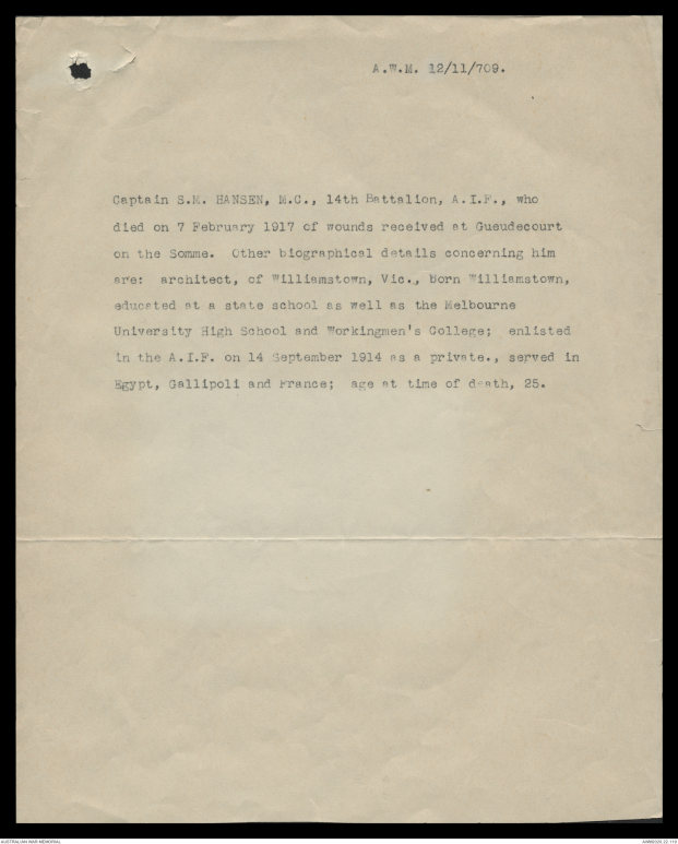 CAPTAINS S. M. HANSEN, M.C. 14th Battalion, A.I.F.