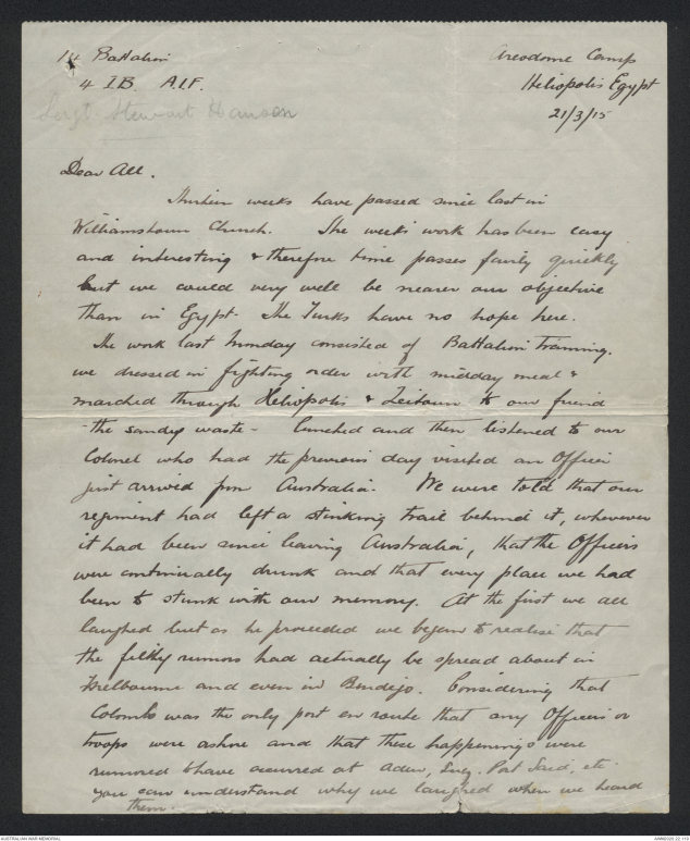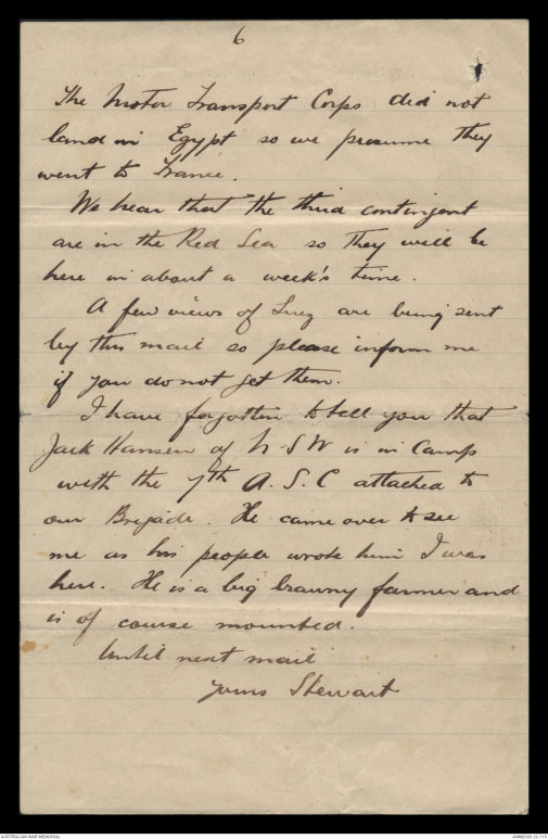 Papers relating to the service of Stewart Murray Hansen, 1915 - 1917 - Part 2