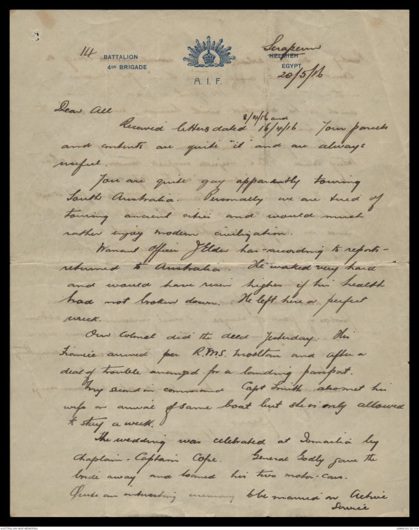 was in camp at Tel-el-Kebir and arranged