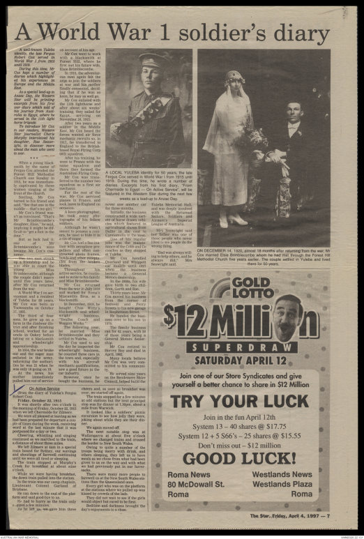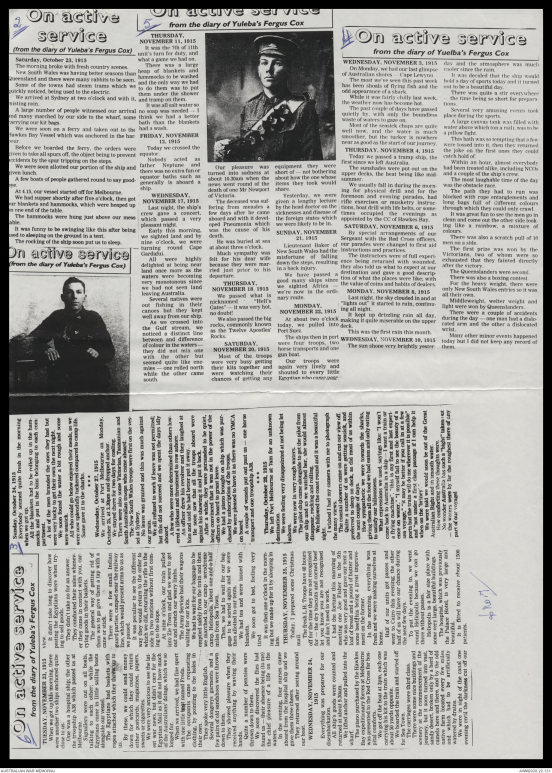 Collection relating to the service of Fergus Robert Cox, 1915-1917 - Part 1