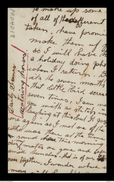 Collection relating to the service of Fergus Robert Cox, 1915-1917 - Part 2