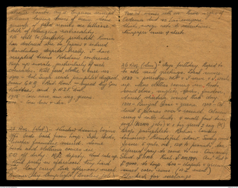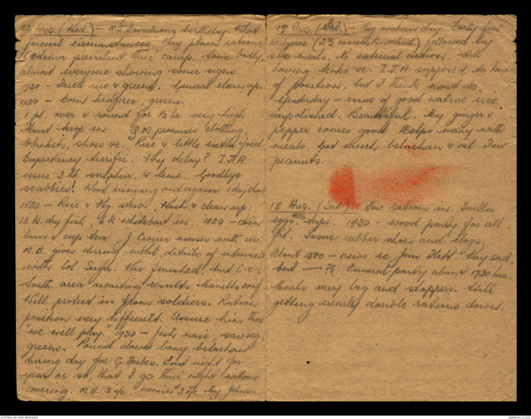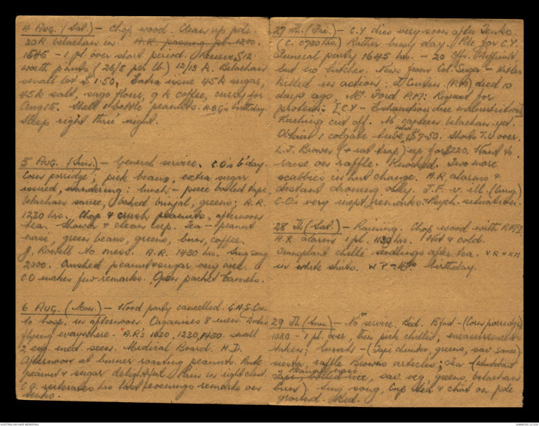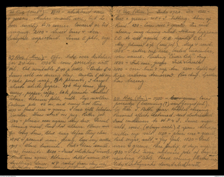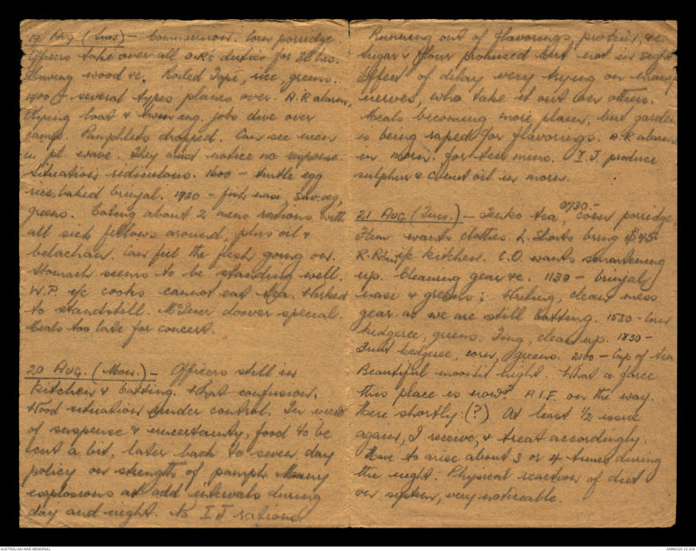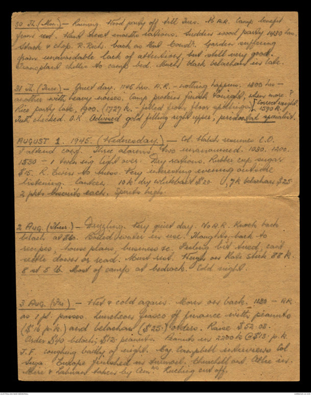 21 AUG. (Tues.) - Tenko tea, 0730 - corn porridge,