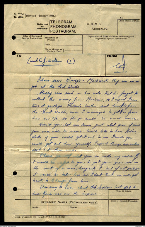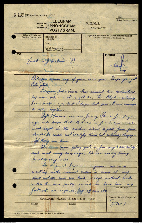 Papers relating to the service of Cyril John Watson, 1941-1945 - Part 4