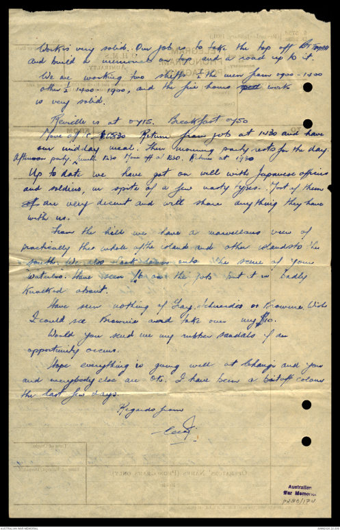 days which is very satisfactory. The Japanese now give us a certain amount of work to do, and we can go