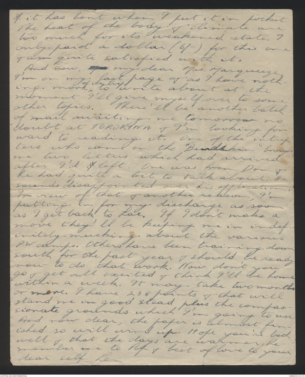 Letters from Leonard Stanley Marquis to his mother, Amy Edith Marquis, 1945 - Part 3