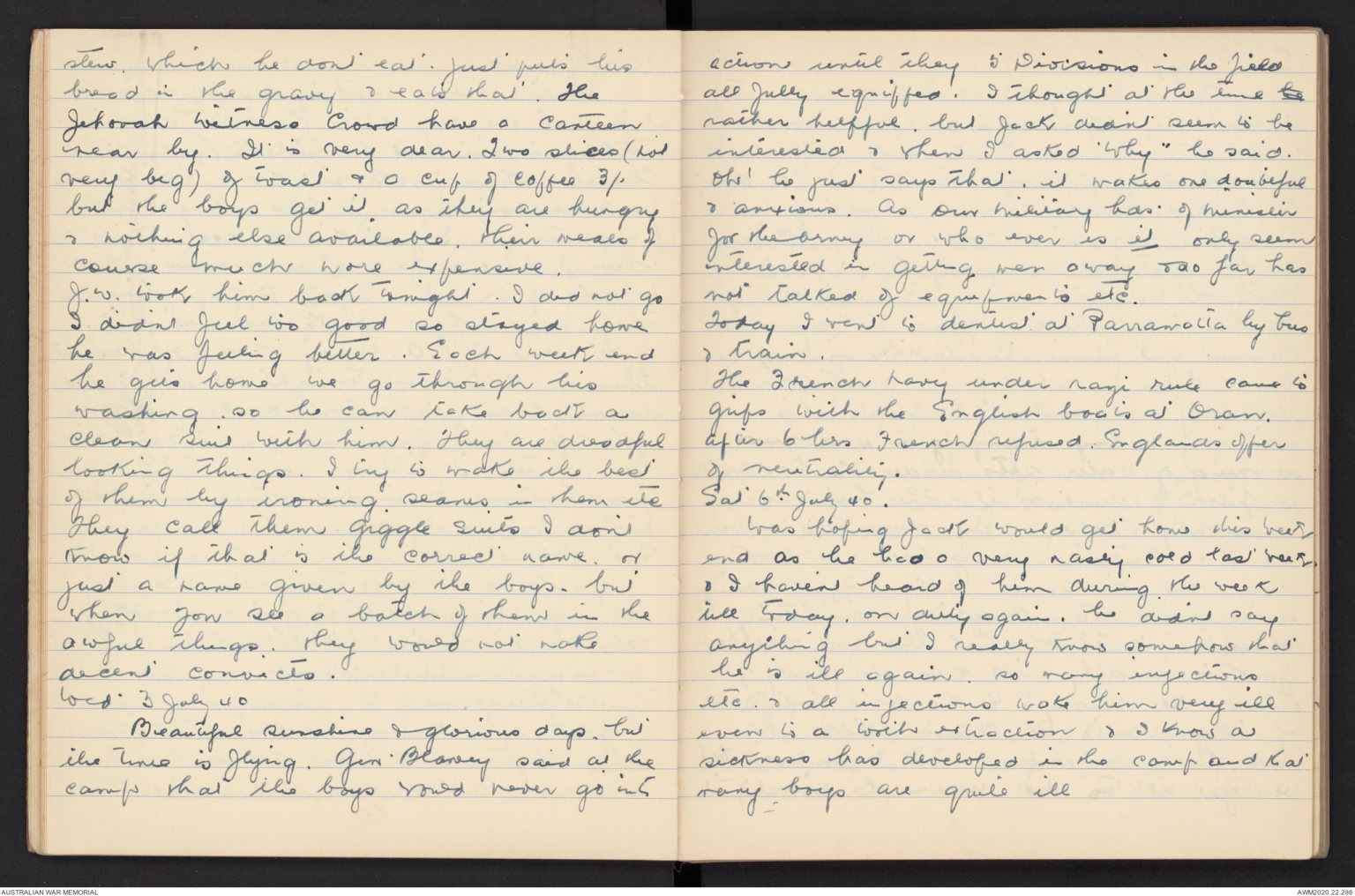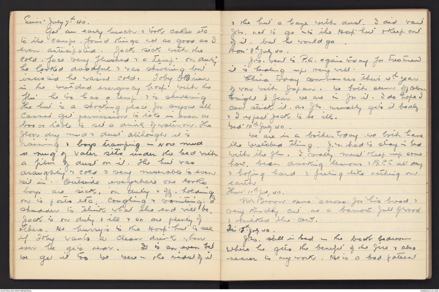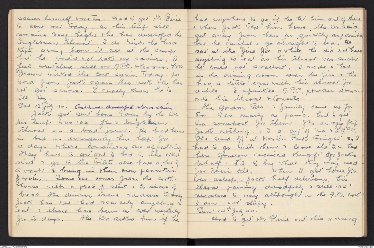 Sat 20th. July 40. Jack got out of bed, as someone