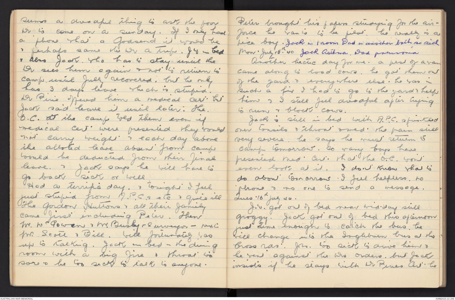 Mon. July 15th. 40 Jack Asthma. Dad pneumonia