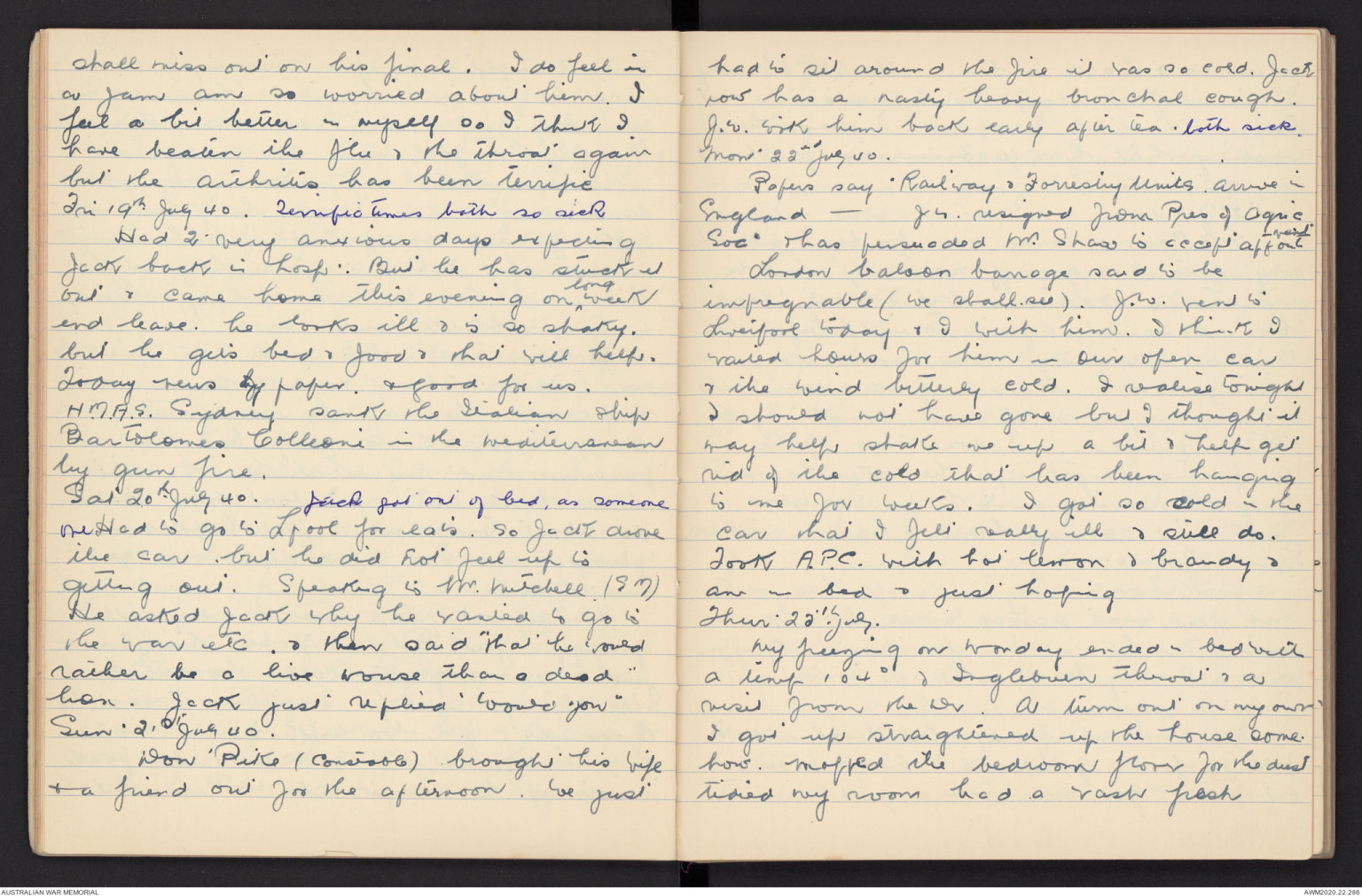 Fri 19th July 40, Terrific times both so sick