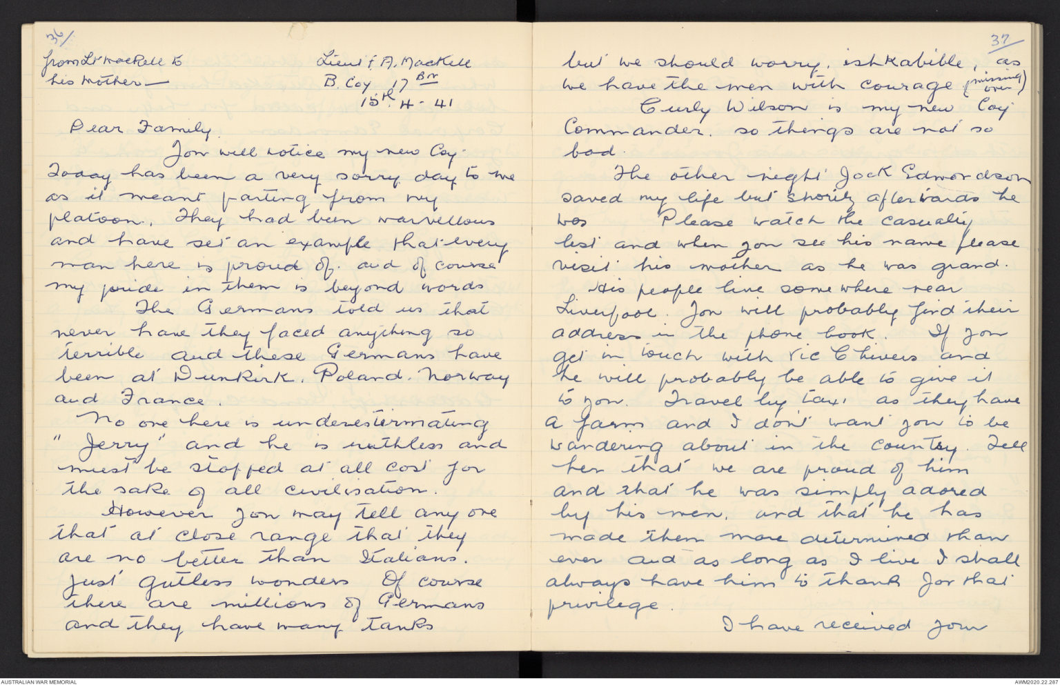 from Lt MacKell to
