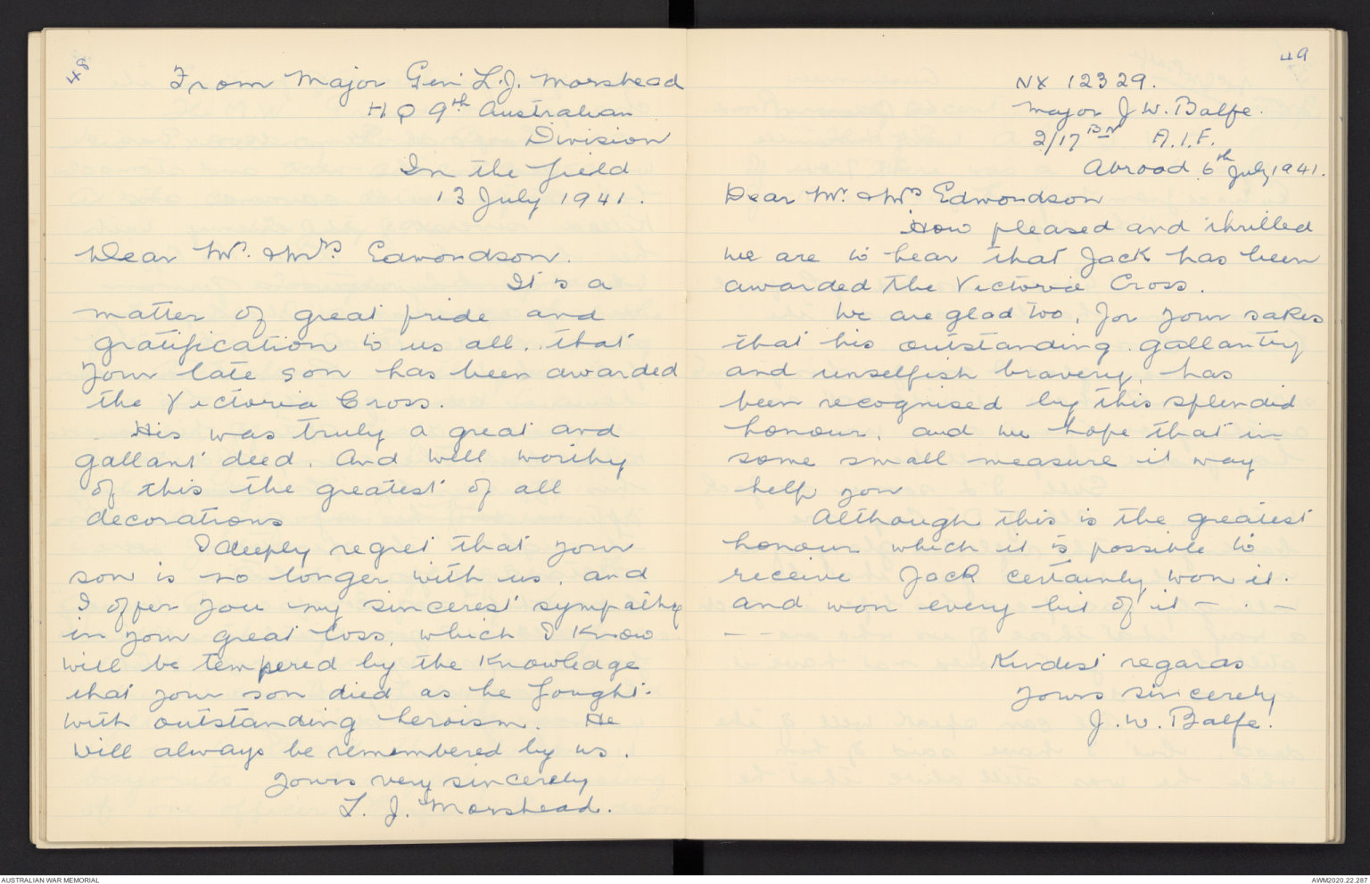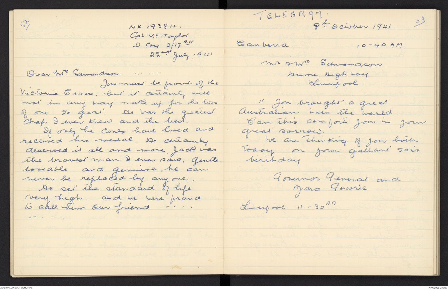letters about home and Aussie.