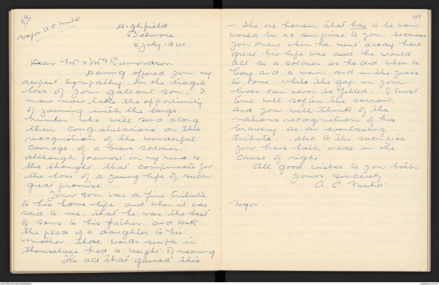 loss of your gallant son, I