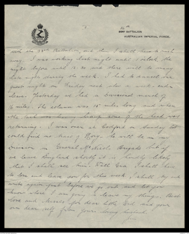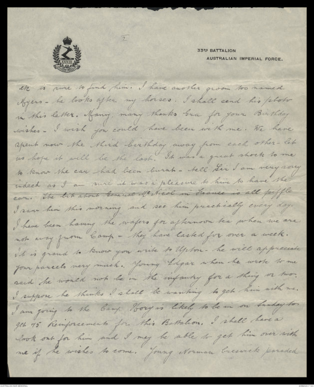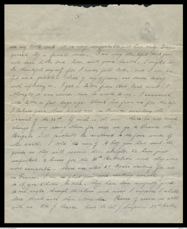 with me. Pte J Pearce Care Lt. Col J Simpson 36th Battn