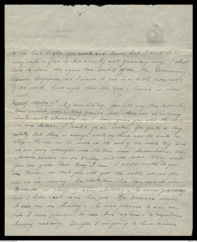 Tuesday November 14th My dear old Gay, You will say this letter has