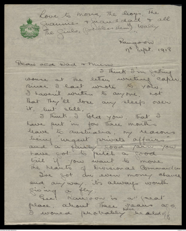 Letters from Captain Walter Morris Felix Gamble to his family, 1917-1918 - Part 18