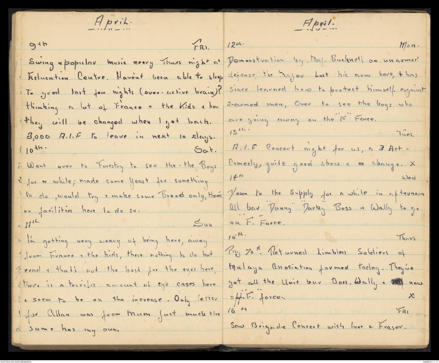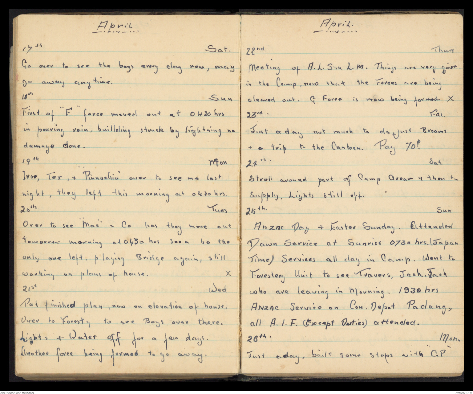 Wallet 3 of 5 - Diary of Francis Russell James Day, volume 1 of 2, 1941-1943, Part 17