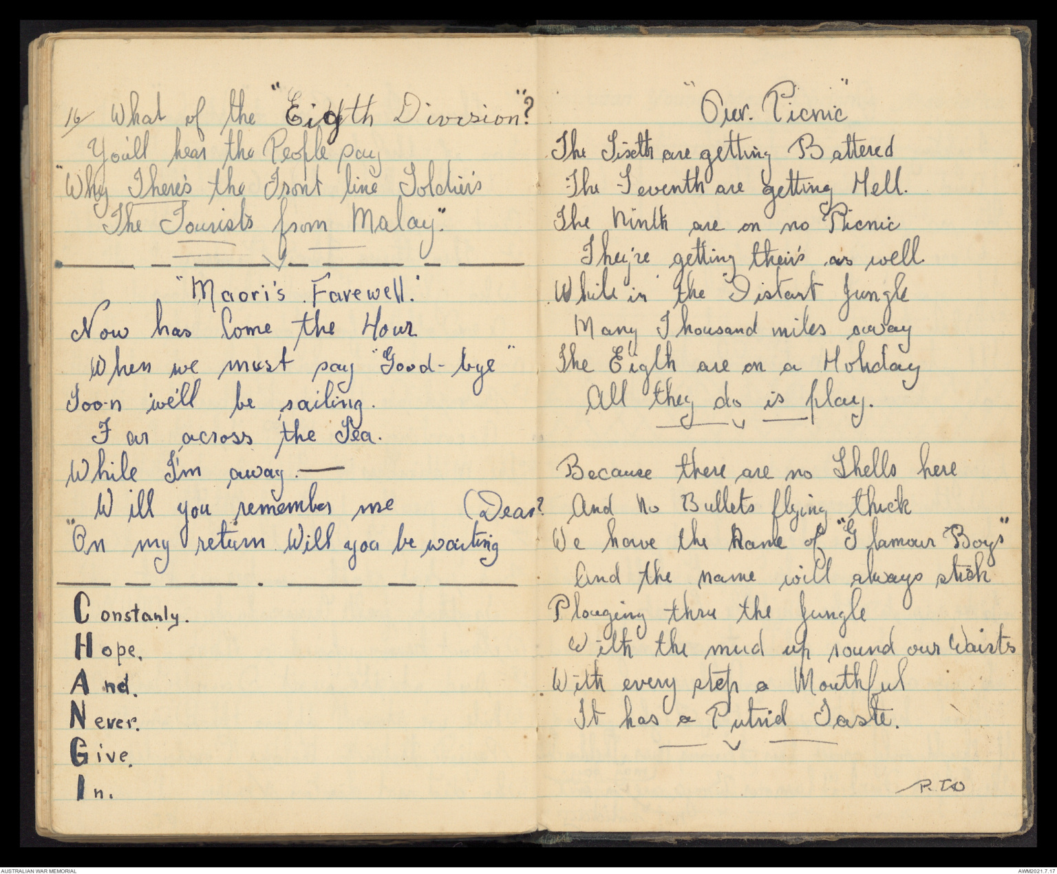 18th Pte. Daniels gives us the Sigs. Song