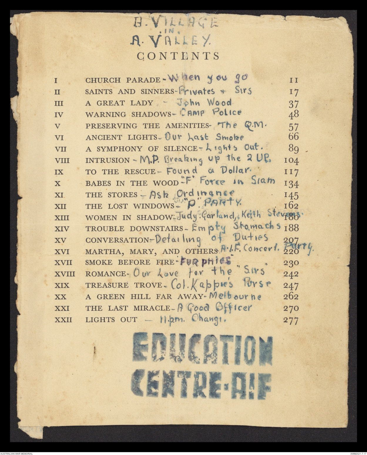 | XVI | MARTHA, MARY AND OTHERS - A.I.F. CONCERT PARTY | 220 |