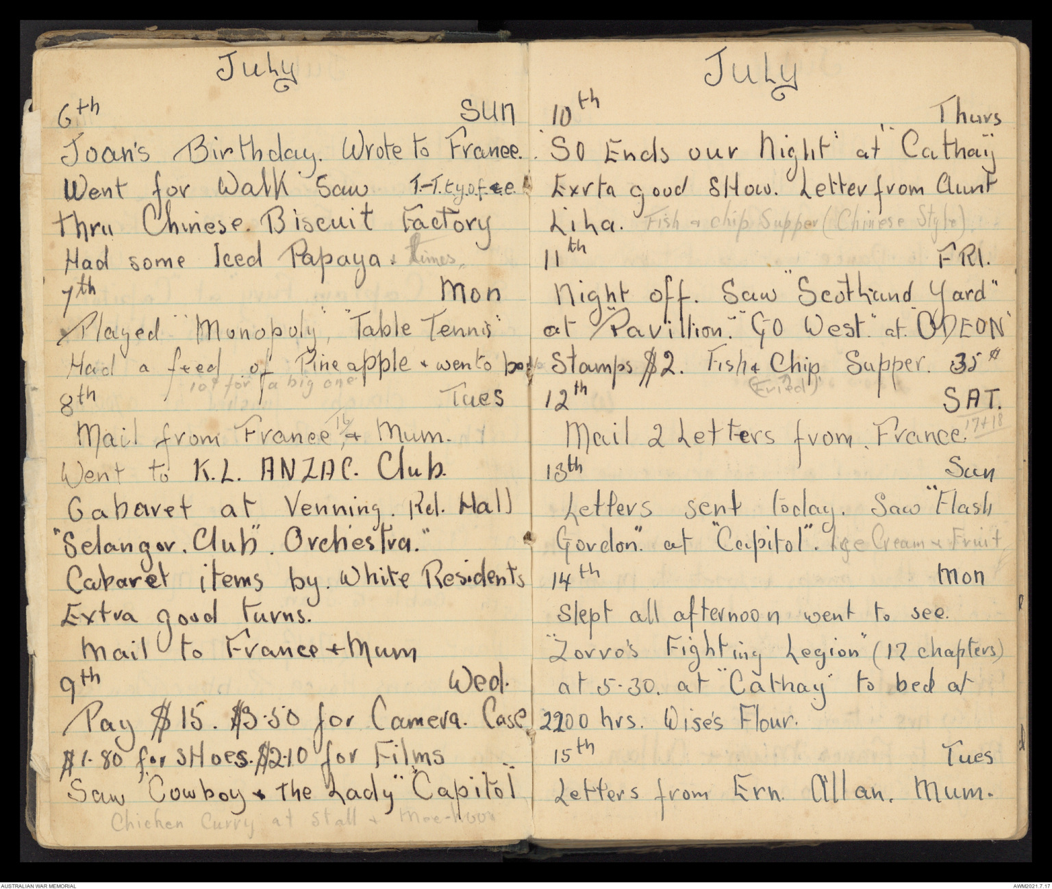 Wrote to Mum, Dad, Vic, France↑