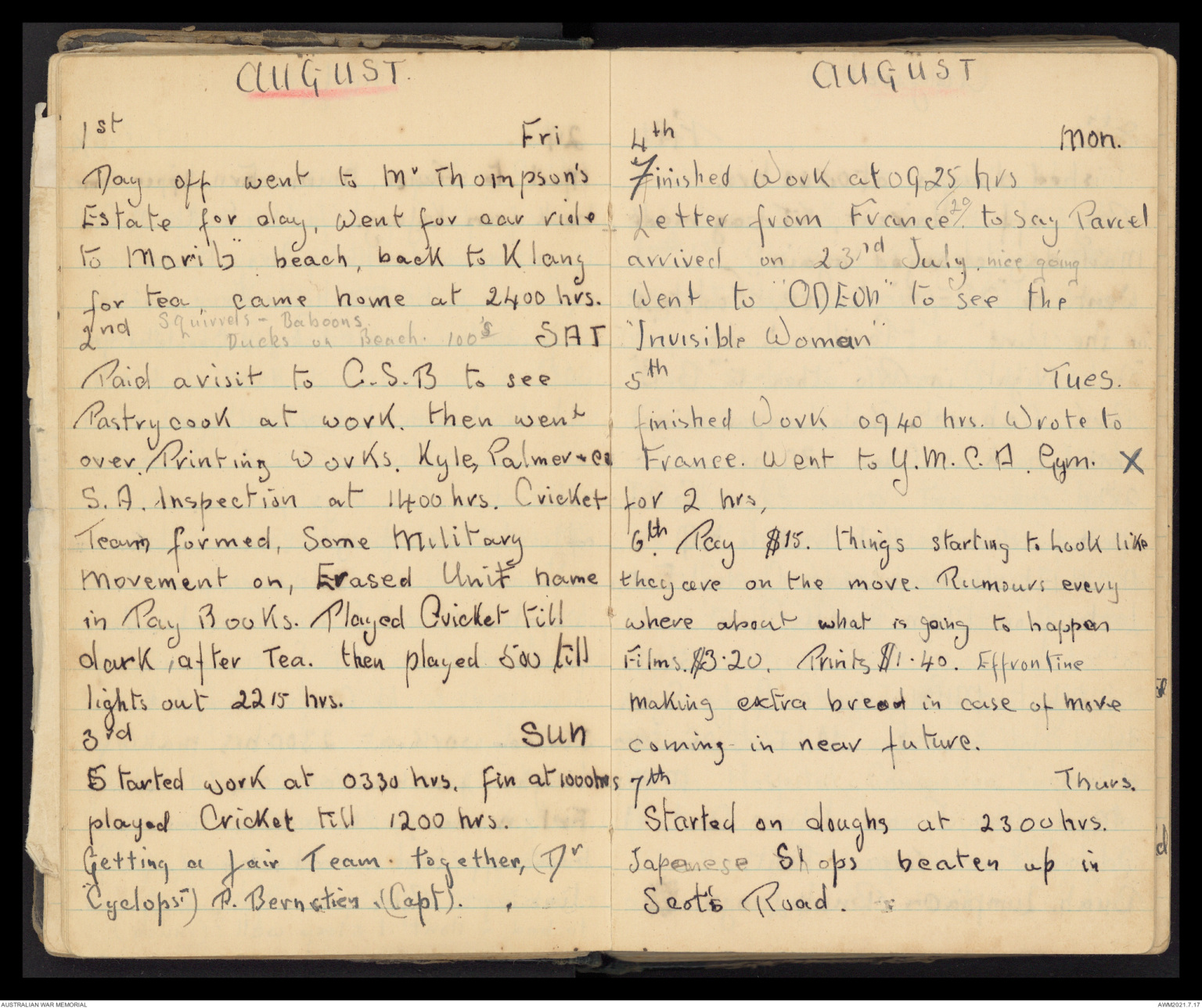 Wallet 3 of 5 - Diary of Francis Russell James Day, volume 1 of 2, 1941-1943, Part 4