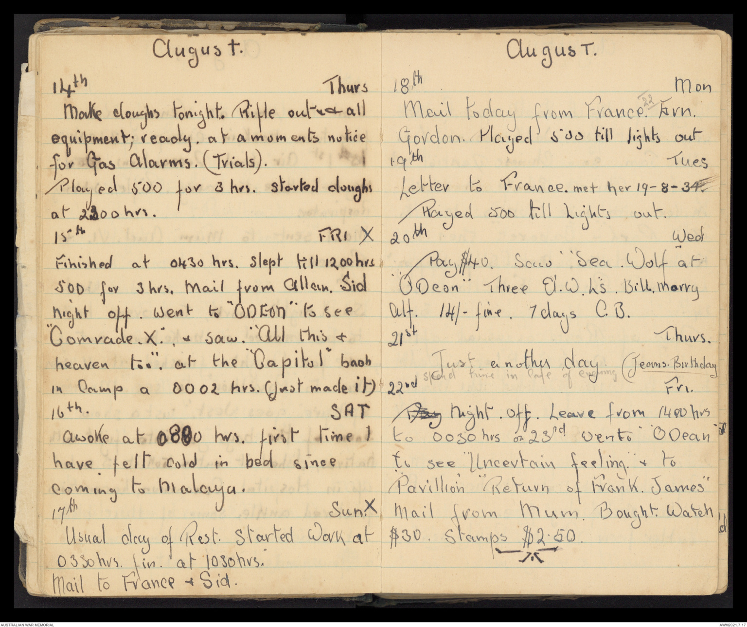 Mail today from France. 22 Ern.