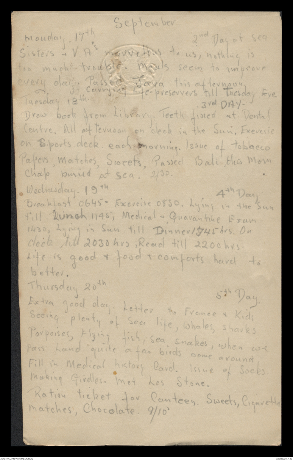 Monday. 17th 2nd Day at sea