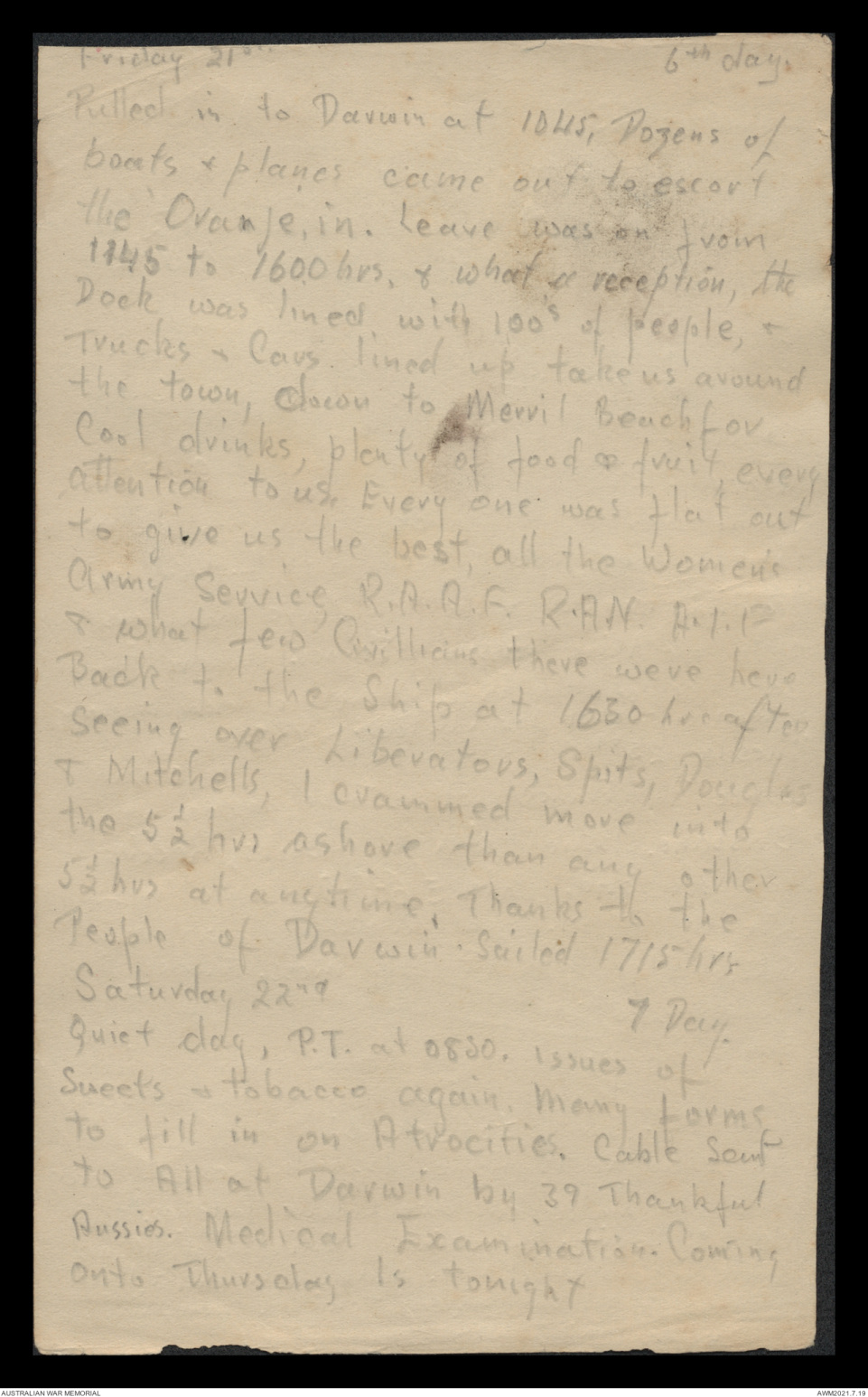 Friday 21st 6th day.