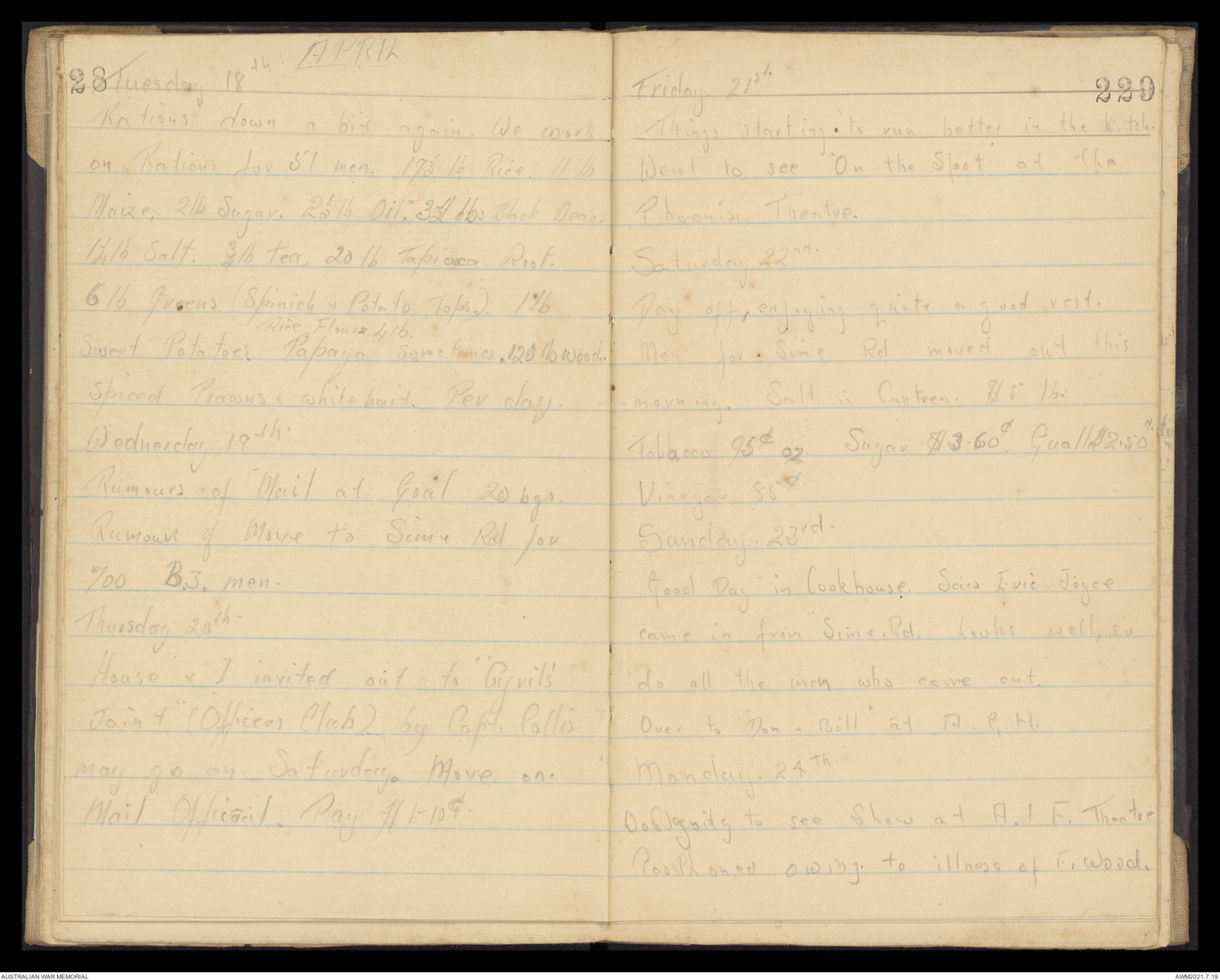 on Rations for 51 men. 19 ½ lb Rice.11 lb