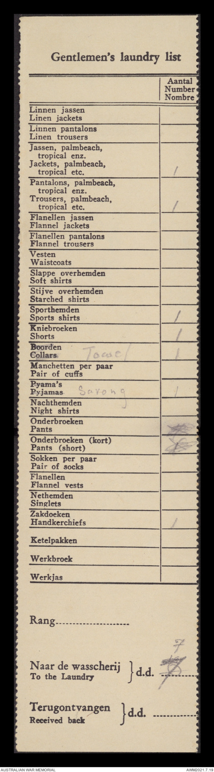 Gentleman's laundry list
