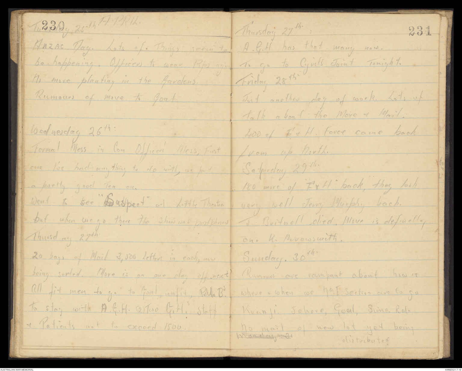 Rumours of mail at Goal 20 bgs.