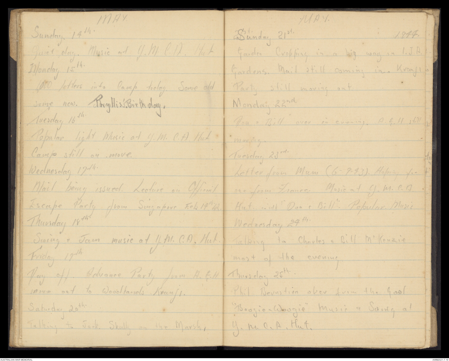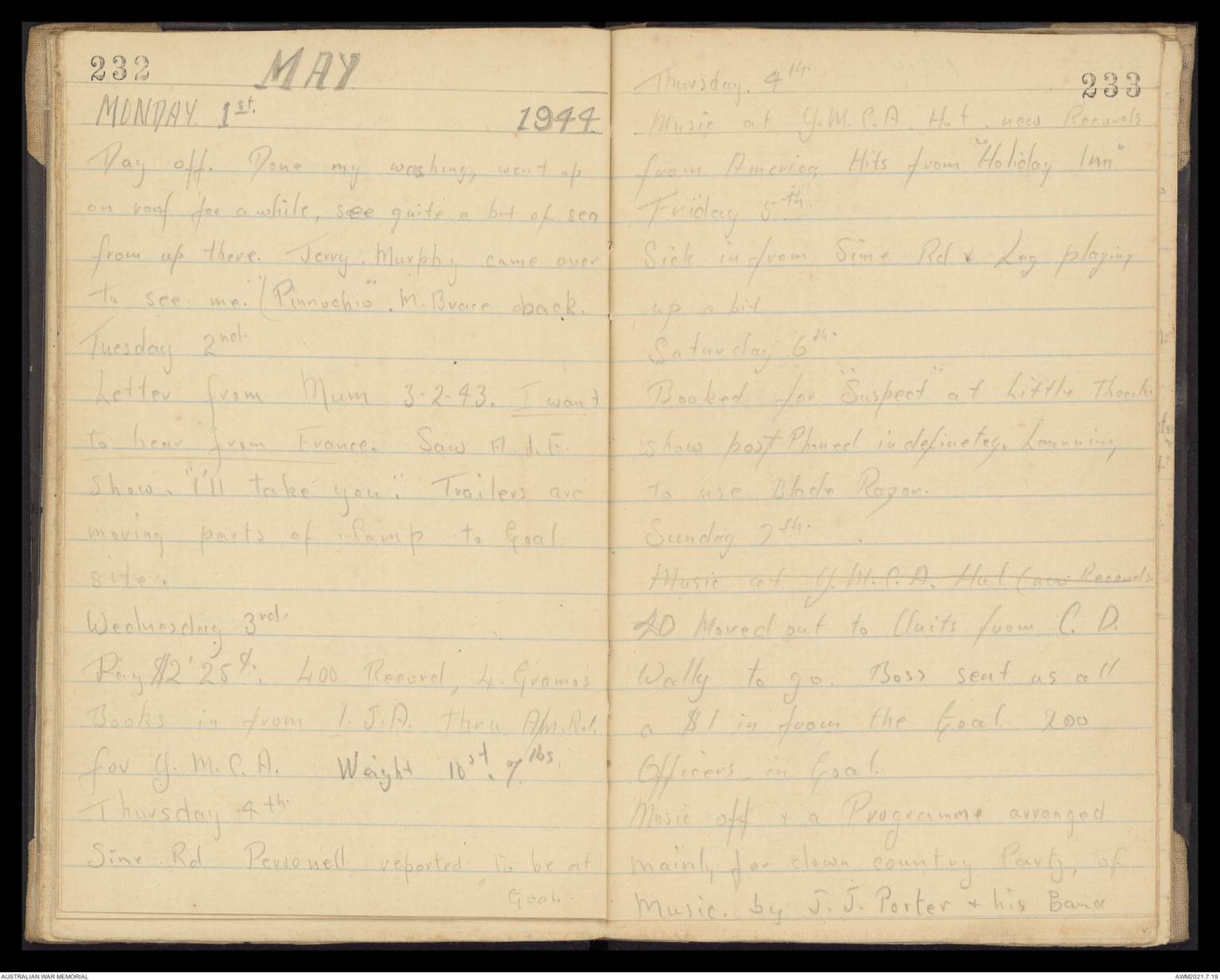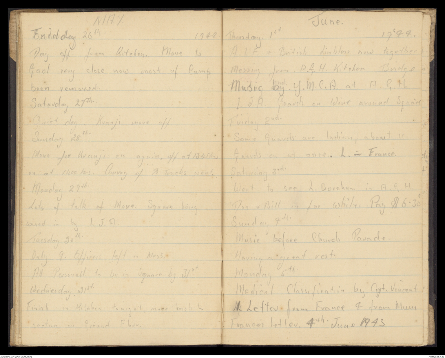 Wallet 5 of 5 - Diary of Francis Russell James Day, volume 2 of 2, 1943-1945, Part 4