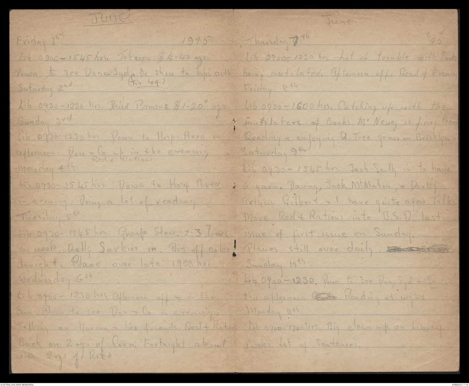 Lib 0930 - 1700 hrs. Down to see Don & Sid in Even.