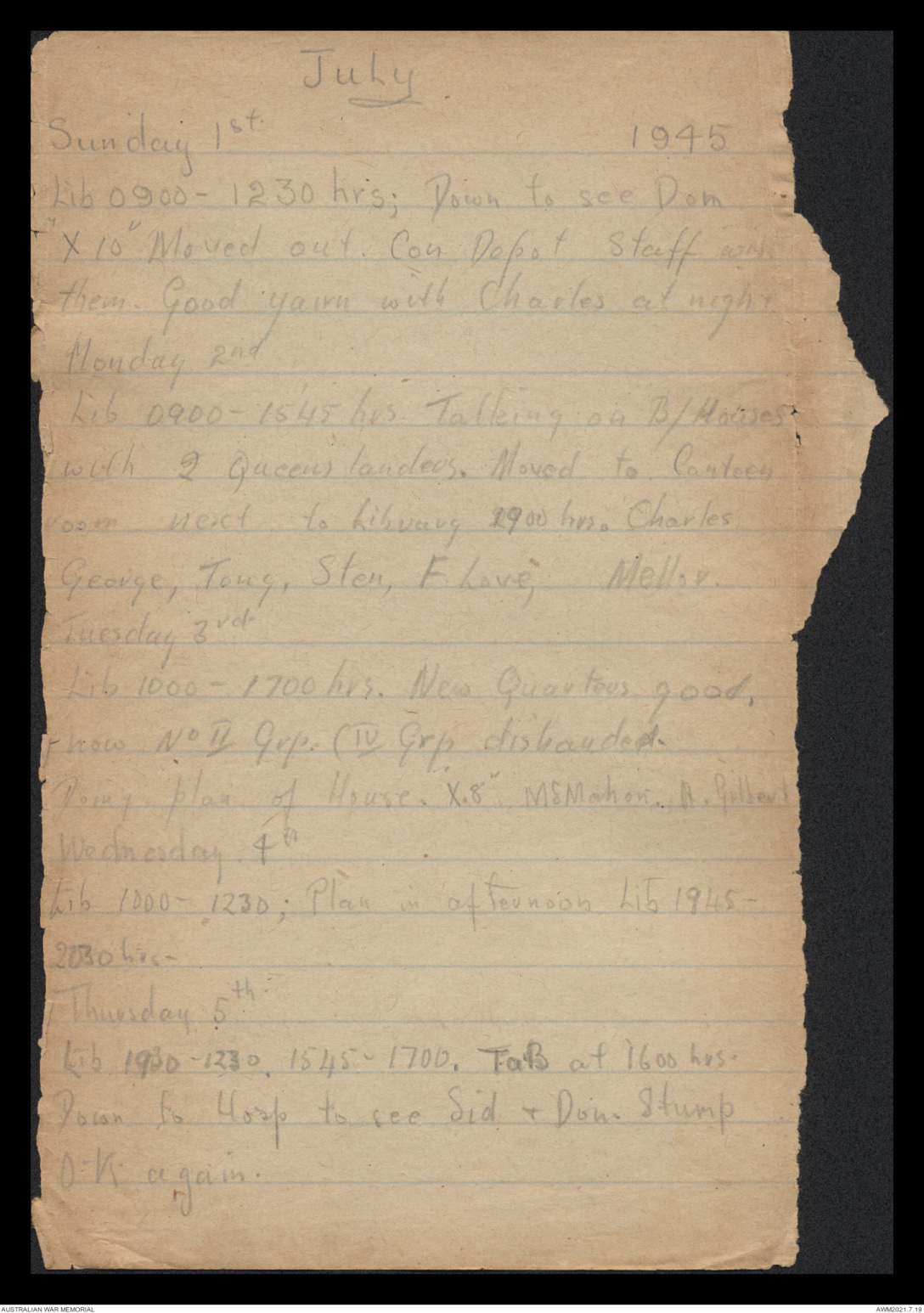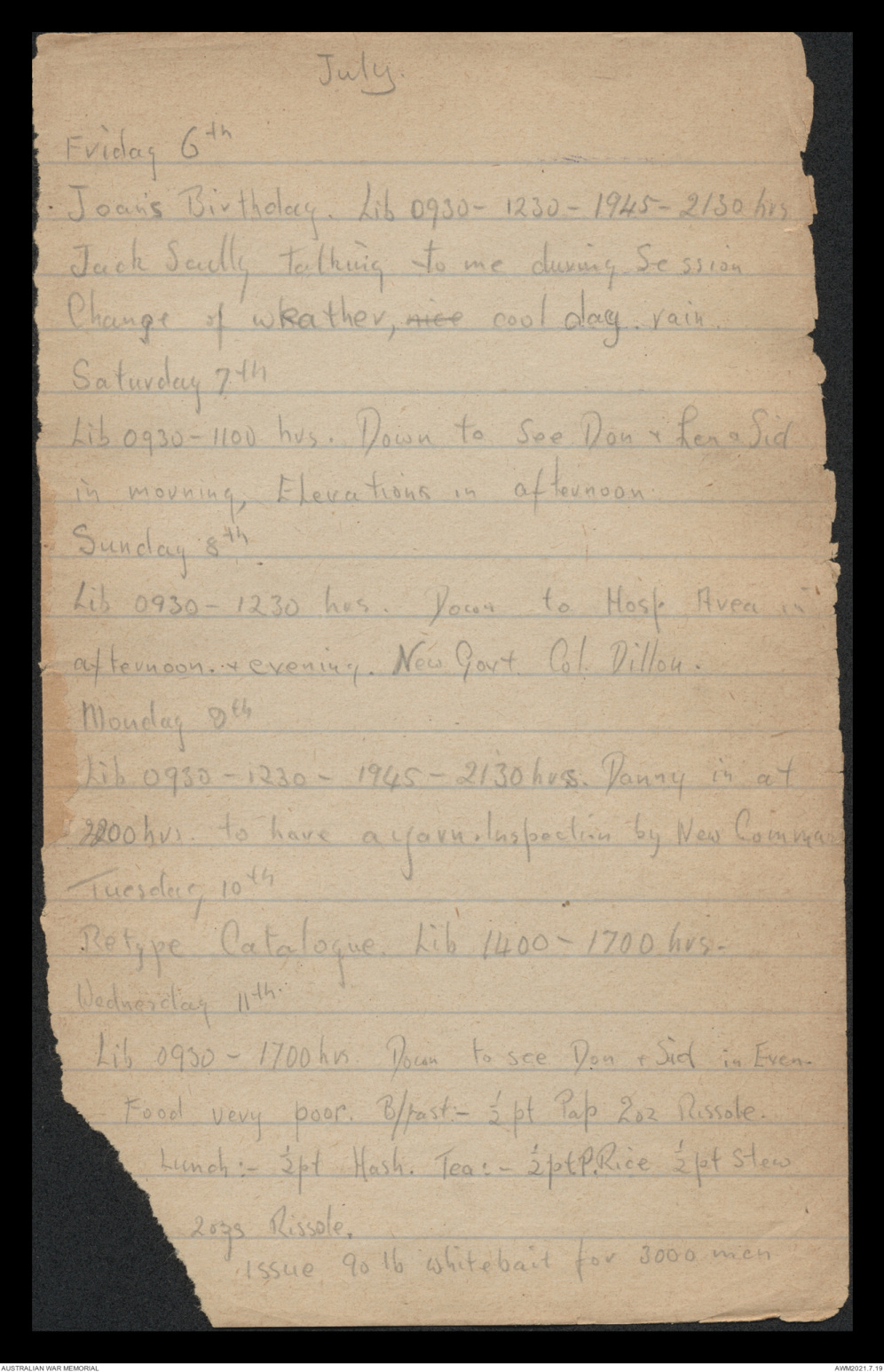 Lib 0930 - 1100 hrs. Down to see Don & Len & Sid