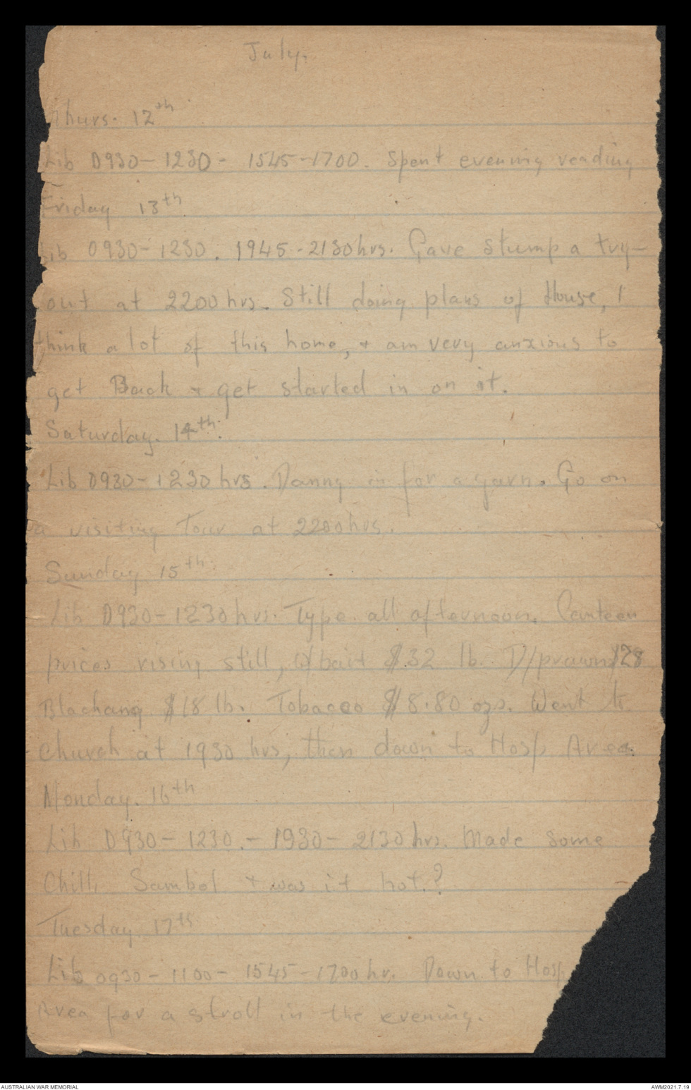 Lib 0930 - 1230 - 1930 - 2130 hrs. Made some