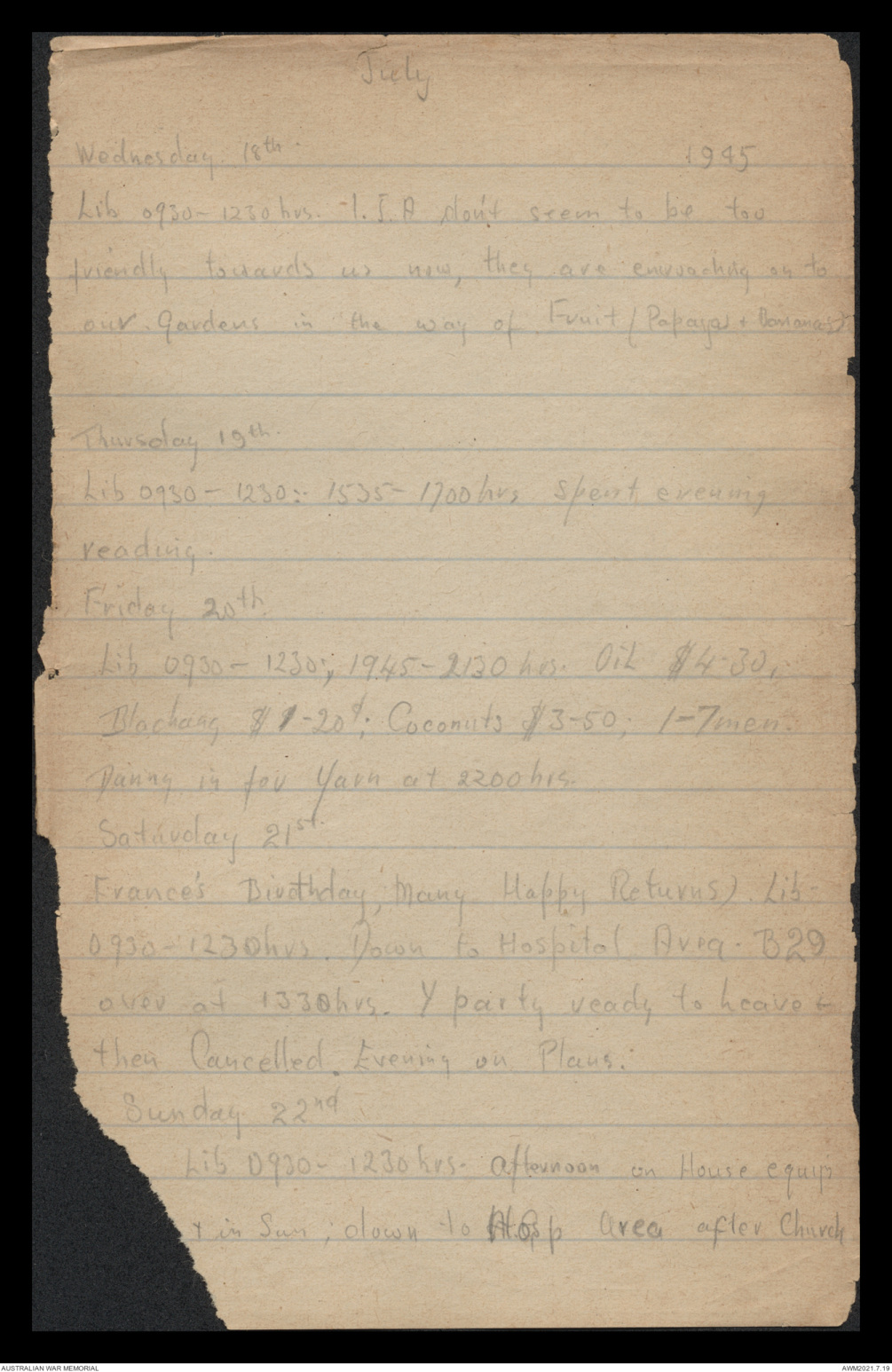 Wednesday 18th 1945