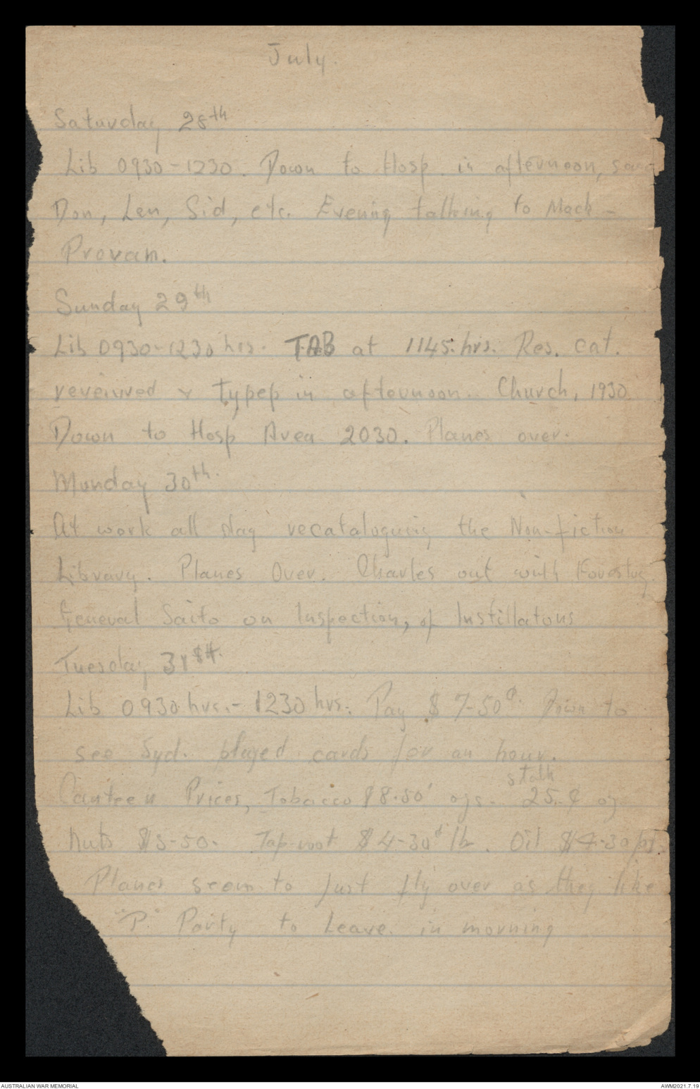 Library. Planes Over. Charles out with [[?]].