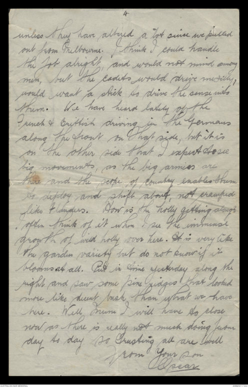 Jones, Oscar Anglesey (Captain, b.1892 - d.1917), letters - Part 2