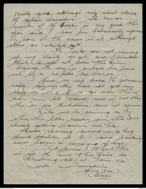Jones, Oscar Anglesey (Captain, b.1892 - d.1917), letters - Part 5
